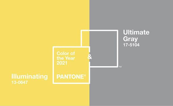 PANTONE 17-5104 極致灰 + PANTONE 13-0647 亮麗黃 結合一對持久耐看又鼓舞人心的色彩, 傳達力量與希望的訊息。